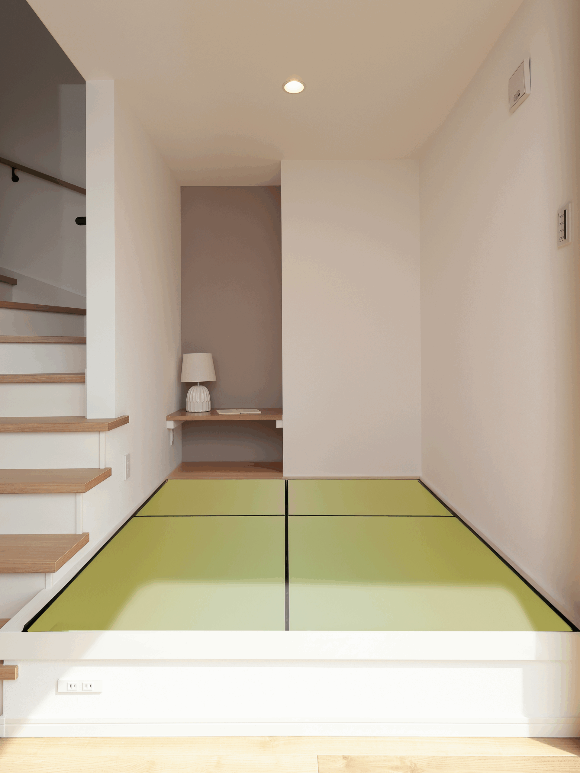 思わずゴロンと転がりたくなってしまう畳コーナー。リビング空間と繋がっていて家事や子供のお世話など気が付くと使っているスペースです。