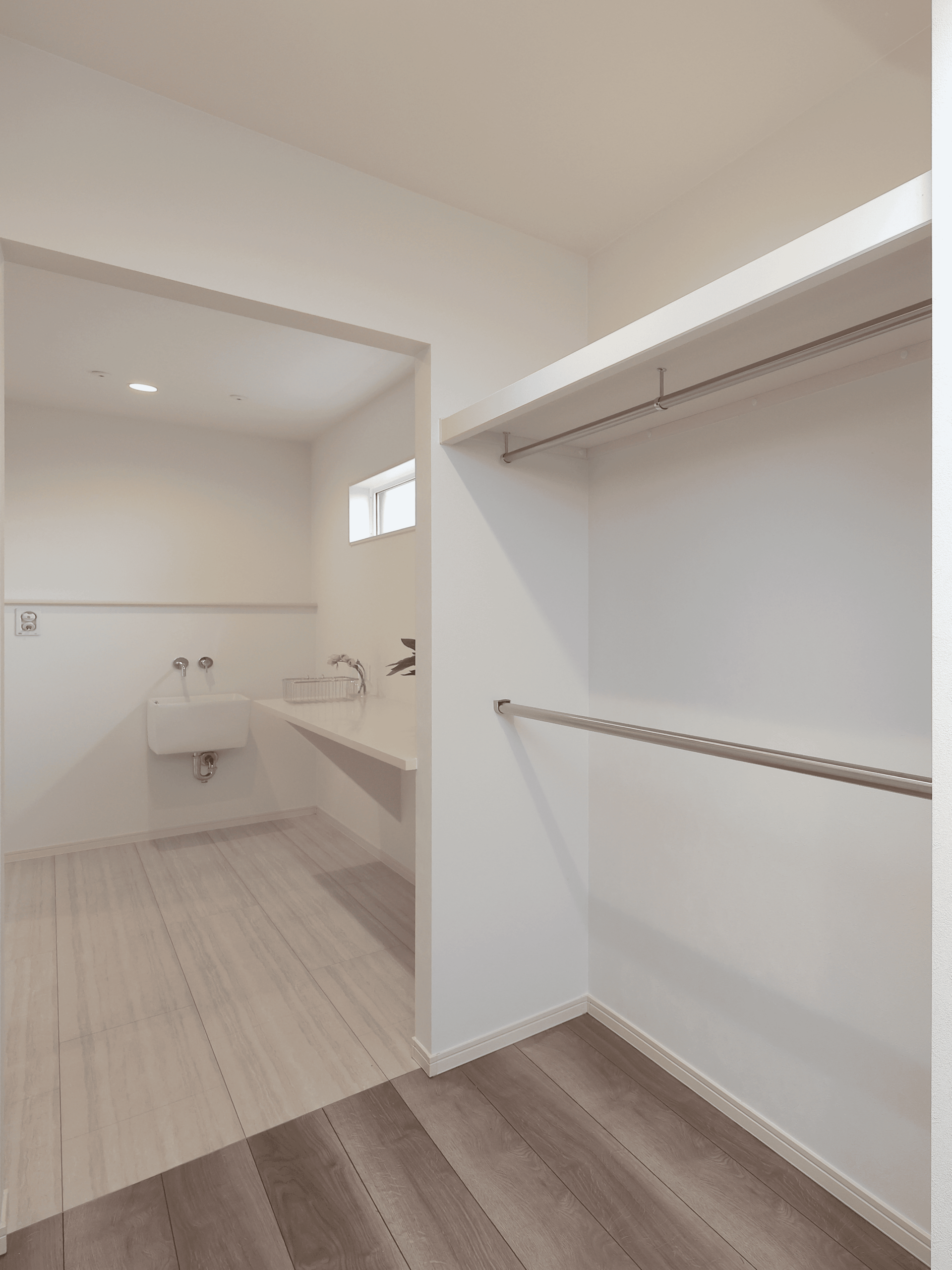 水回りを固め、家事動線もラクラク。ランドリーとファミクロを並べるのは思った以上に便利です。
