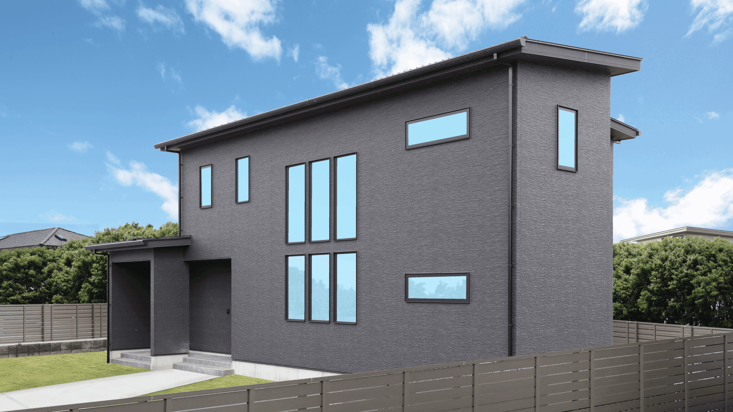 外観は黒でシンプルに仕上げ、南側に設けた窓から各部屋を明るく照らします。