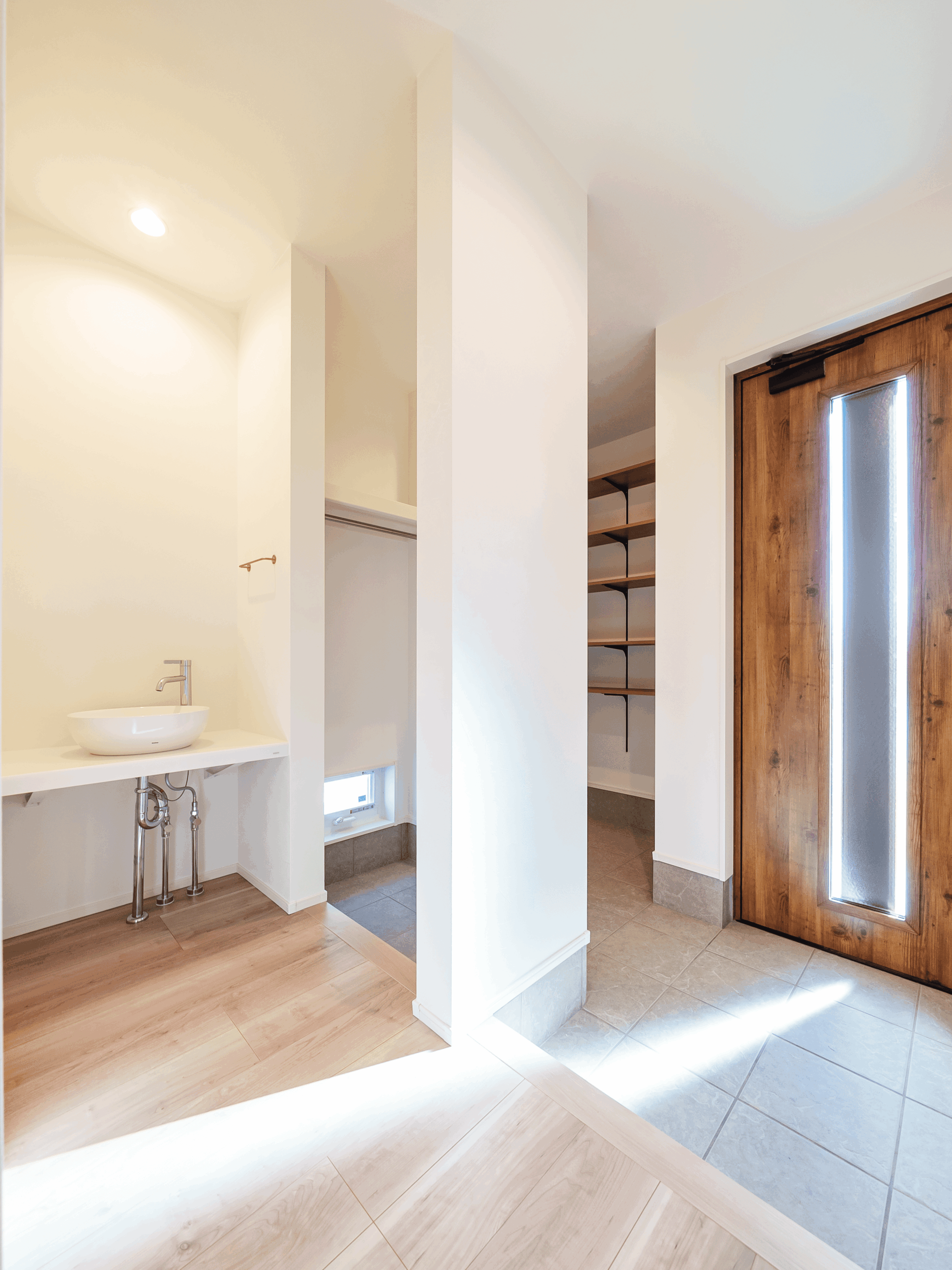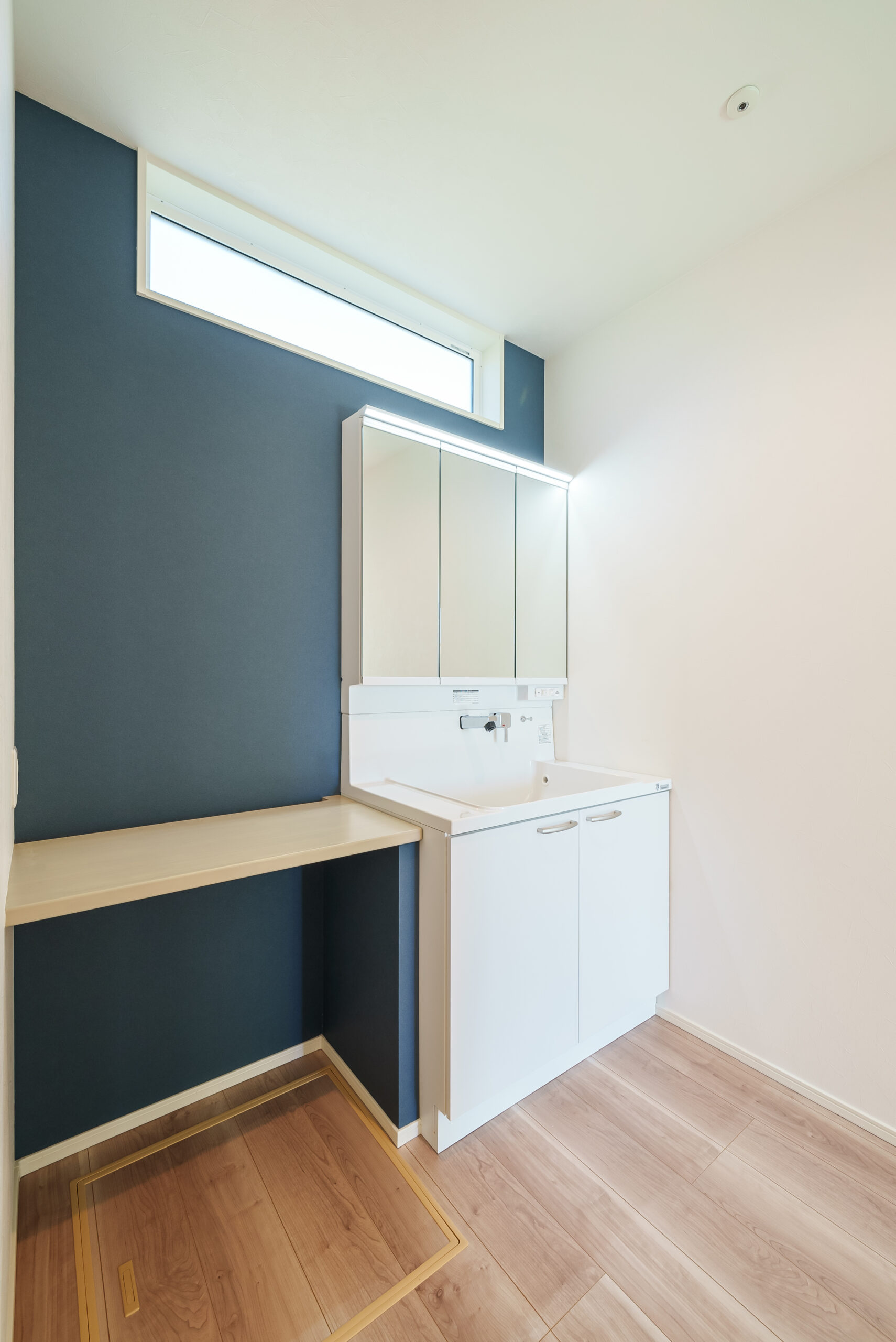 洗面スペースの上部に設けたFIX窓は朝から気持ちいい光を取り入れてくれます