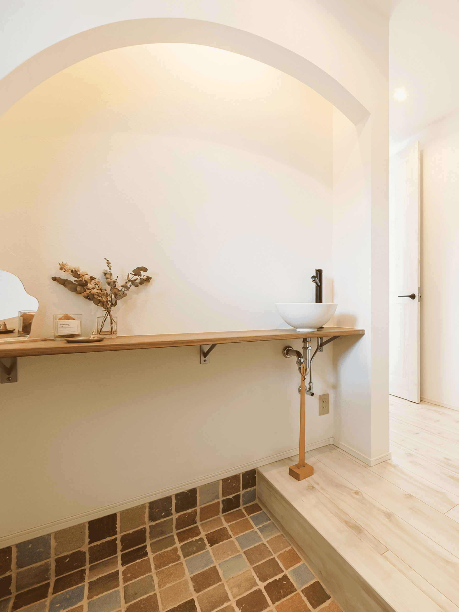 可愛らしい玄関がお出迎え。ただいま手洗いでお客様が来ても安心。