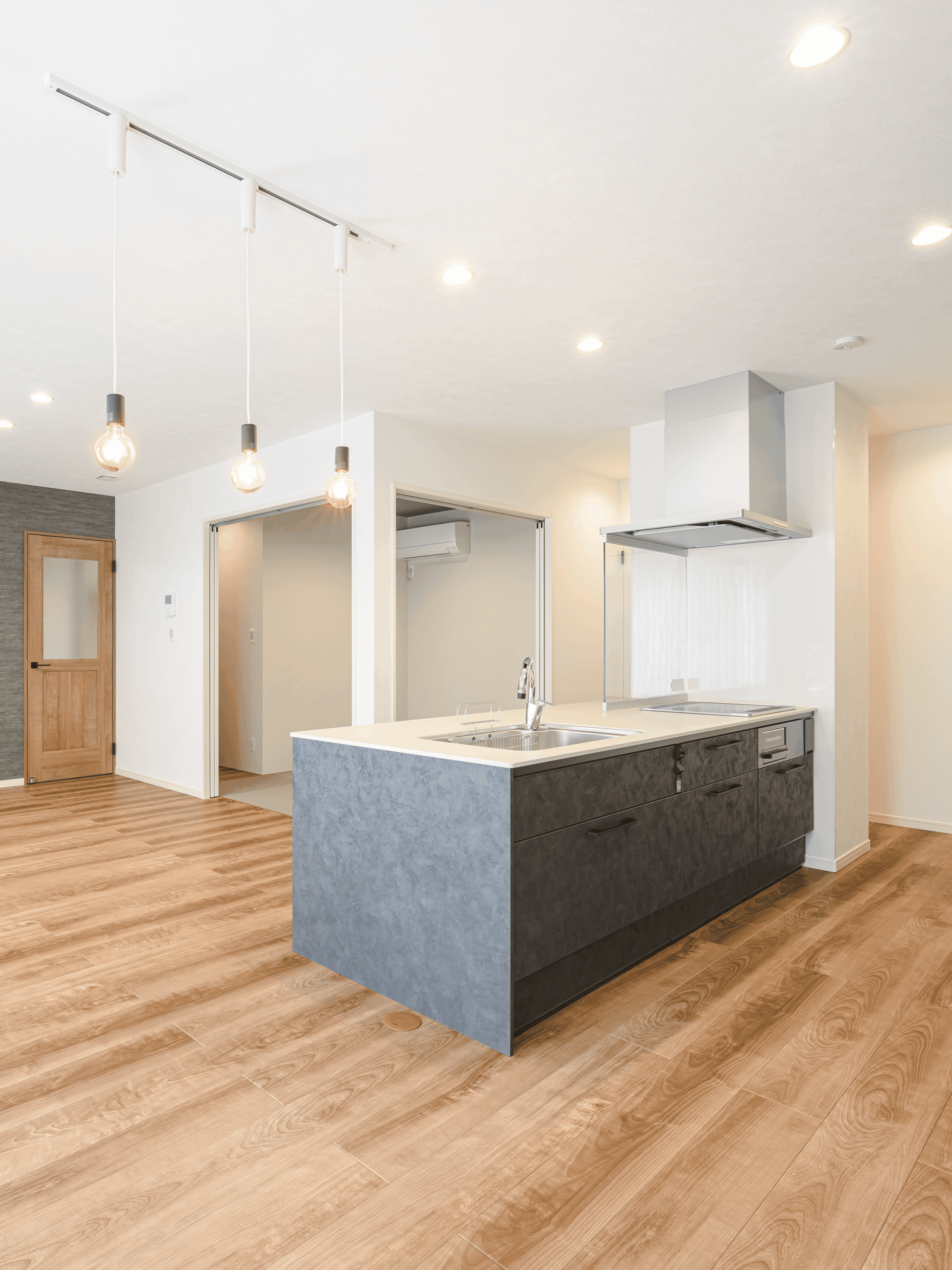 LIXILのペニンシュラキッチンはかっこよく存在感があります。ダイニングを横並びで置き、片付けもラクラクです。